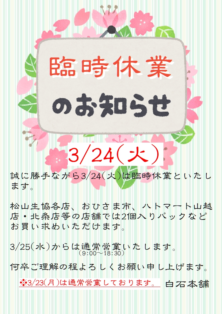 « 3月営業カレンダー