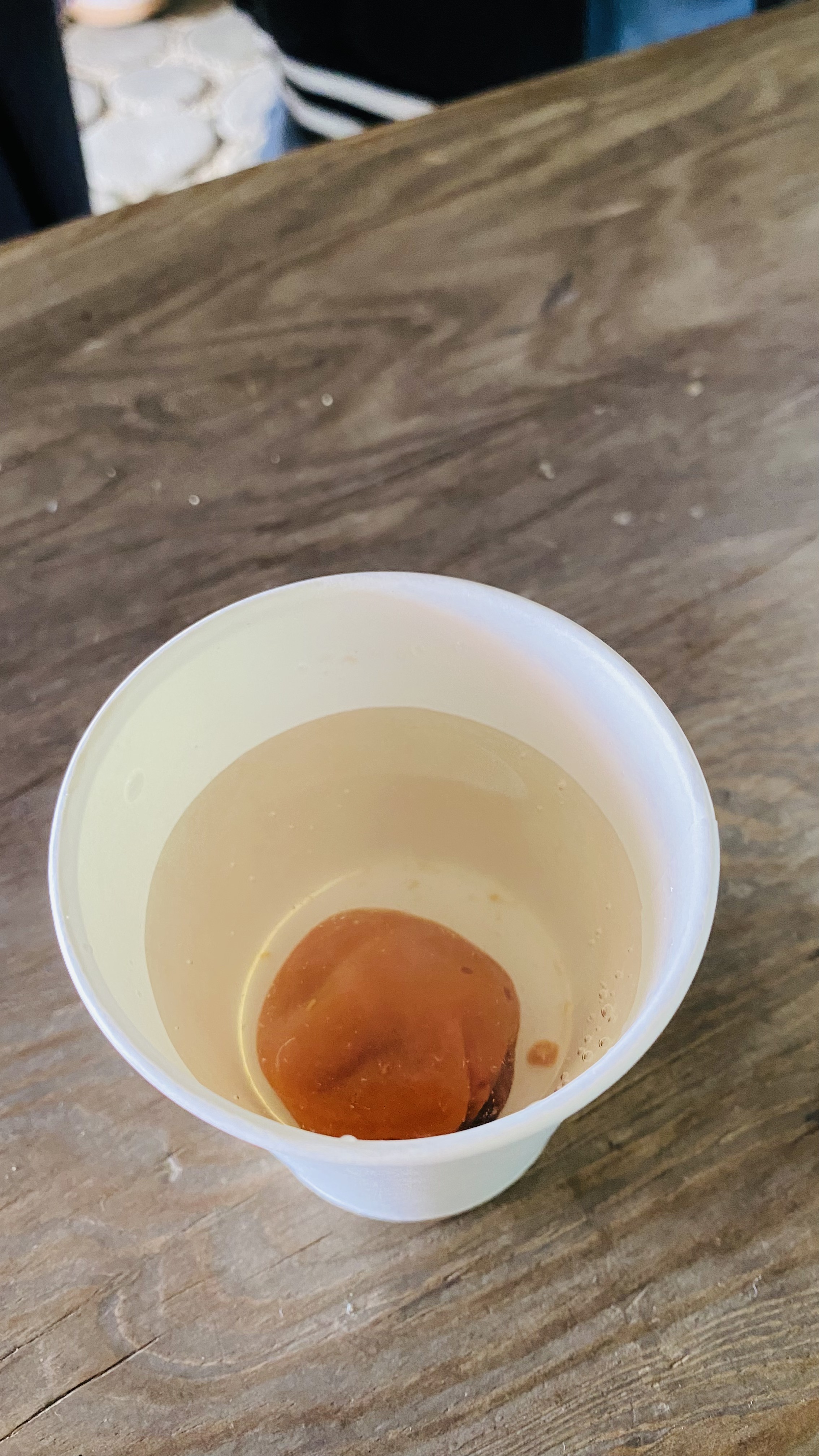 大粒の梅を一粒、コップに入れてお湯を注ぎます。