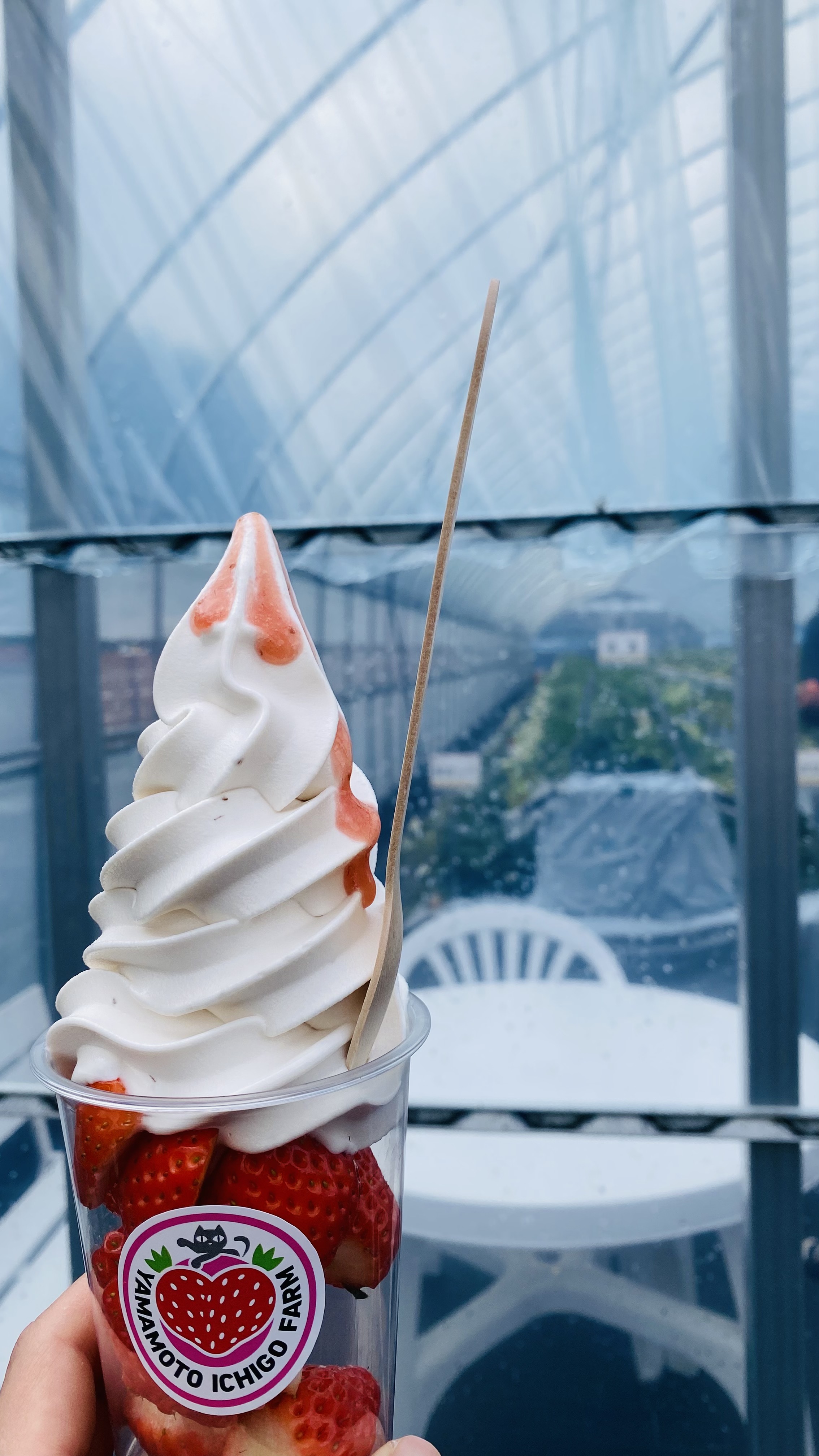 最後に園内ぐるっと回り、併設されている苺ファームにて苺ソフトをいただきます。