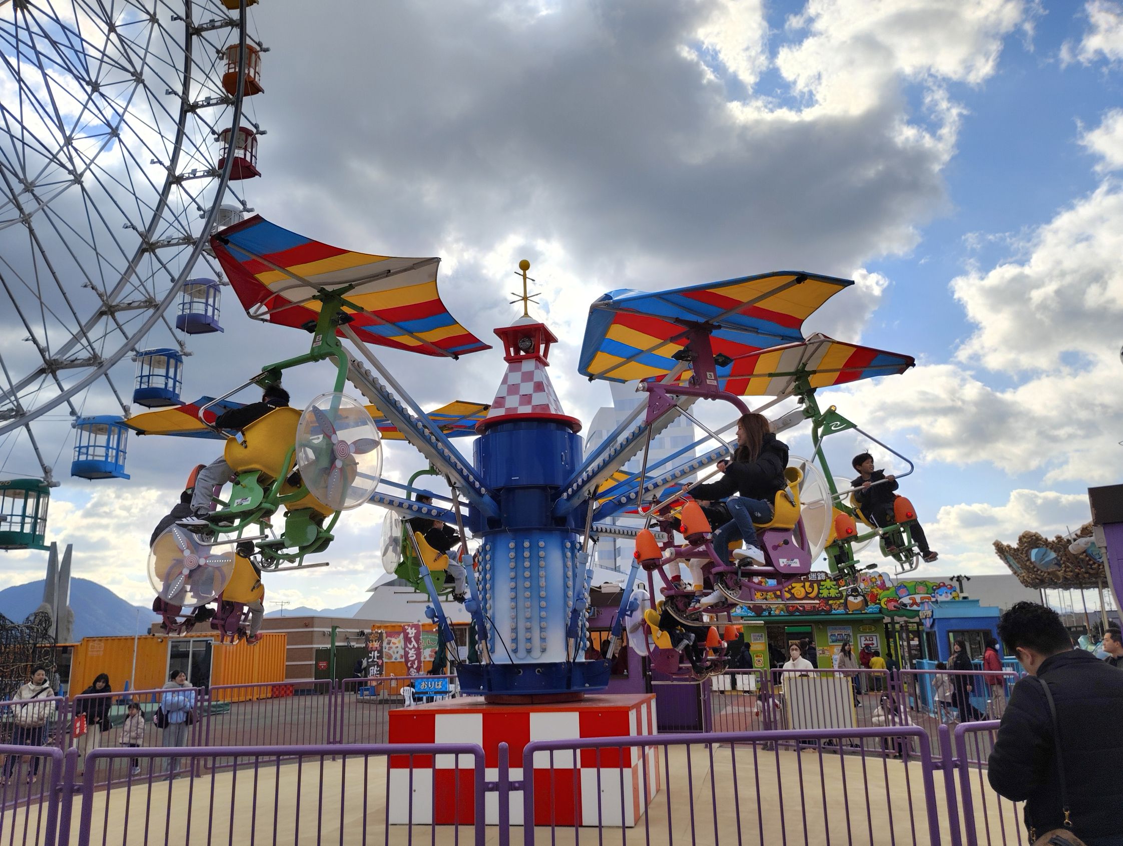 海響館のすぐ隣にあるスモールな遊園地「はい!からっと横丁」です。